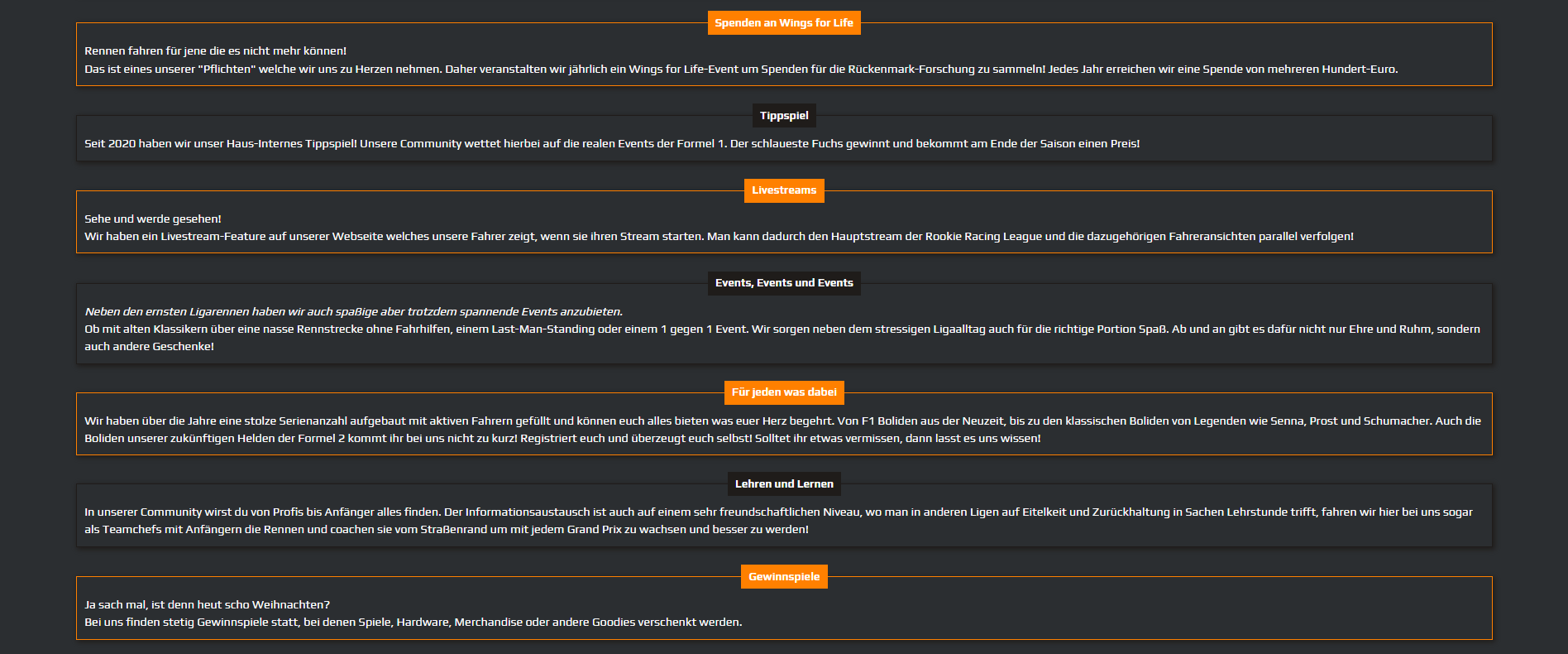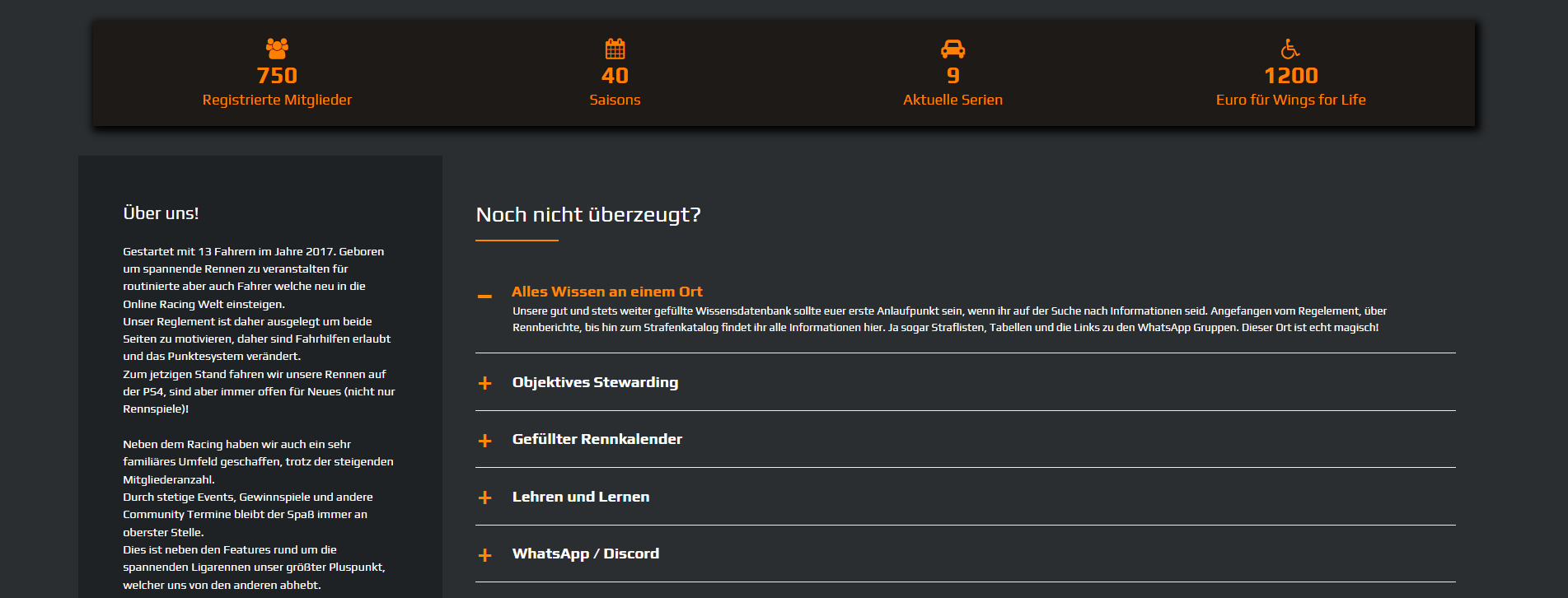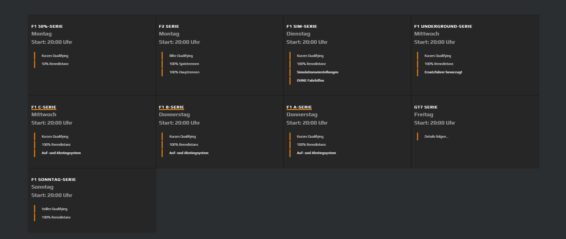 Dies wird auf der Startseite unserer Liga angezeigt und dient für potentielle neue Fahrer als erster Eindruck.