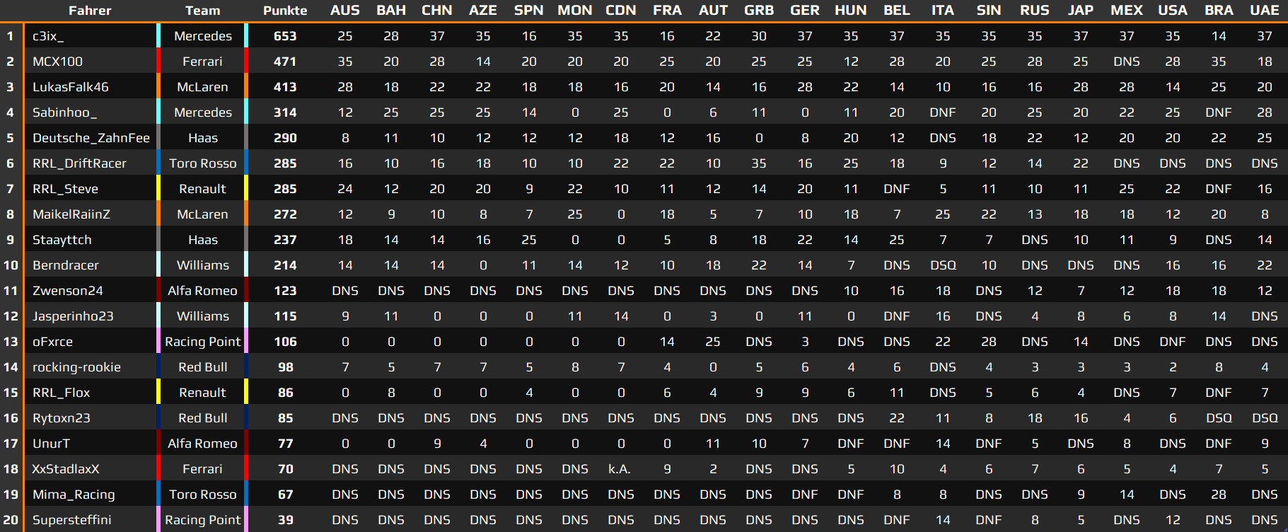 F1 Sonntag Saison 2019/2020